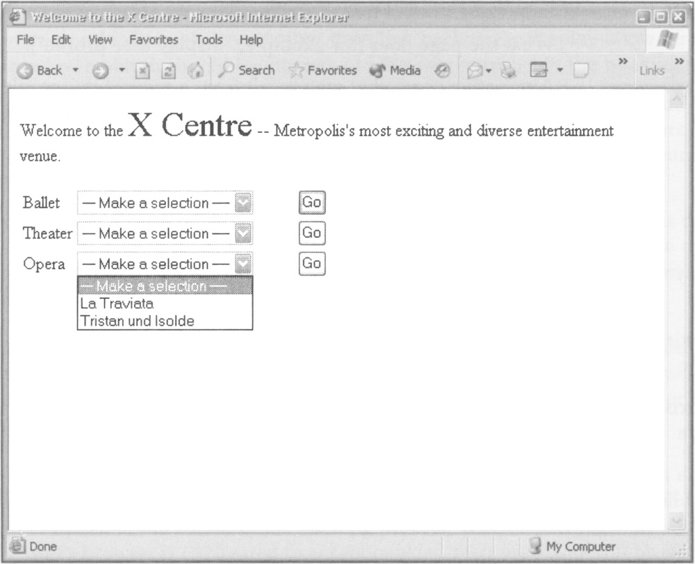 The page must be dynamic: genres and shows must not be hard-coded in HTML. The number of genres will not be so great in the immediate future that having a separate drop-down for each genre is likely to become unworkable. However, the system architecture must support other interfaces, such as splitting this page by having a separate page for each genre, if the number of genres and shows increases significantly. The user's first impression of the system is vital, so this page must load quickly: