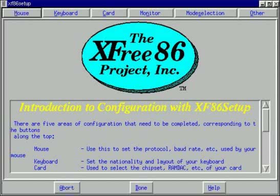 Each Linux distribution has its own X Window configuration program. XFree86 also has a text-based configuration program which is complex to use. But what if both the distribution program and xf86config, the text-based configuration for XFree86, do not seem to do what you need? XFree86 also comes with a graphical configuration tool.